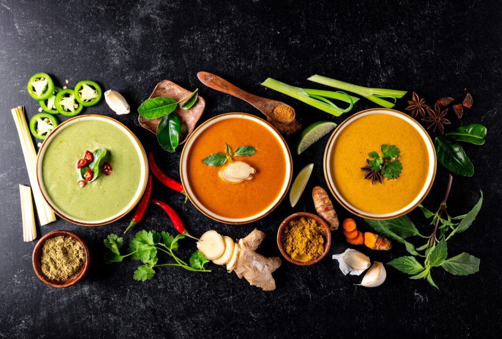 Thai cooking is built on harmony. Salty, spicy, sour, and sweet come together in layers to create depth and vibrancy. The curries reflect that journey, from the heat of Spicy Makrut Green to the mellow richness of Massaman. Each one is bright with crisp vegetables, a rich coconut milk finish and in Chef Dupre’s words, delivers “explosions of flavor.”